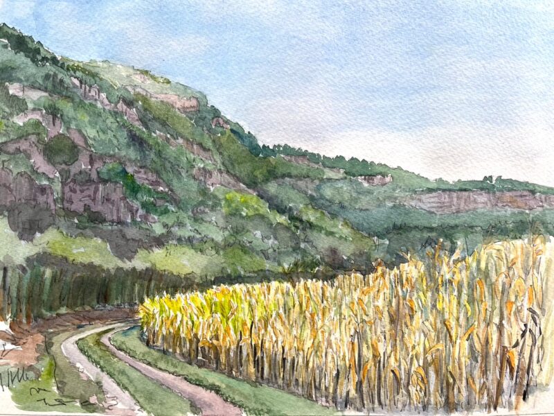 « Ce voyage est d’une profonde beauté. Ce n’est pas que tous les endroits soient pittoresques ou que tous les villages soient accueillants. Ce n’est pas que des jours d’incertitude quant à l’approvisionnement, ou des problèmes au genou ou au pied ne soulèvent pas le doute occasionnel. C’est l’accumulation des jours difficiles, l’accumulation des beaux moments ; l’hébergement ordinaire et les séjours joyeux et affectueux en famille ; les moments calmes des nuits de montagne ; les espaces sacrés d’une crypte ou d’une forêt, la grandeur des cols alpins et la beauté des fresques ; le verre d’eau offert par le villageois. C’est cette expérience accumulée qui est intériorisée, contextualisée par le vidage complet de l’esprit. C’est le voyage dans l’âme. L’ouverture de nos cœurs et de nos esprits pour témoigner de la gentillesse et voir la beauté de tout ce qui est autour de nous. Les moments inattendus de joie profonde.