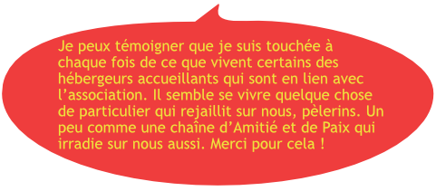 Ainsi les questions posées portaient sur le balisage du chemin, les topoguides, les cartes, la liste des hébergements, l’animation faite par l’association (les AG, les rencontres entre accueillants, la newsletter …), les ressources spirituelles fournies sur le site (piccole luci, le guide spirituel).