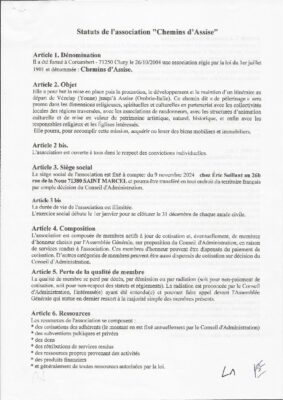 Statuts Chemins d’Assise signés 15 mars 2025